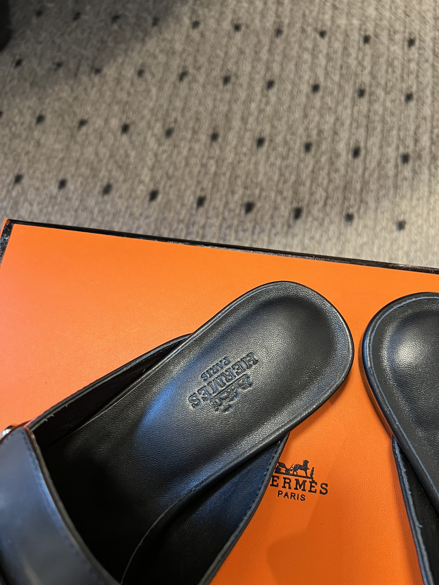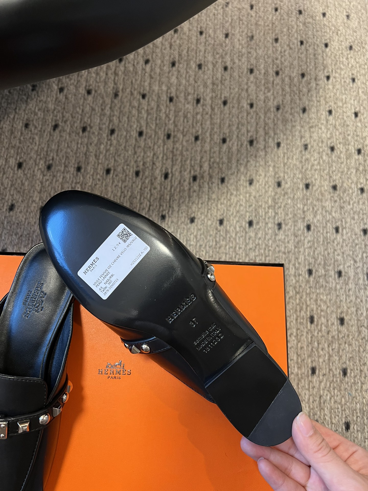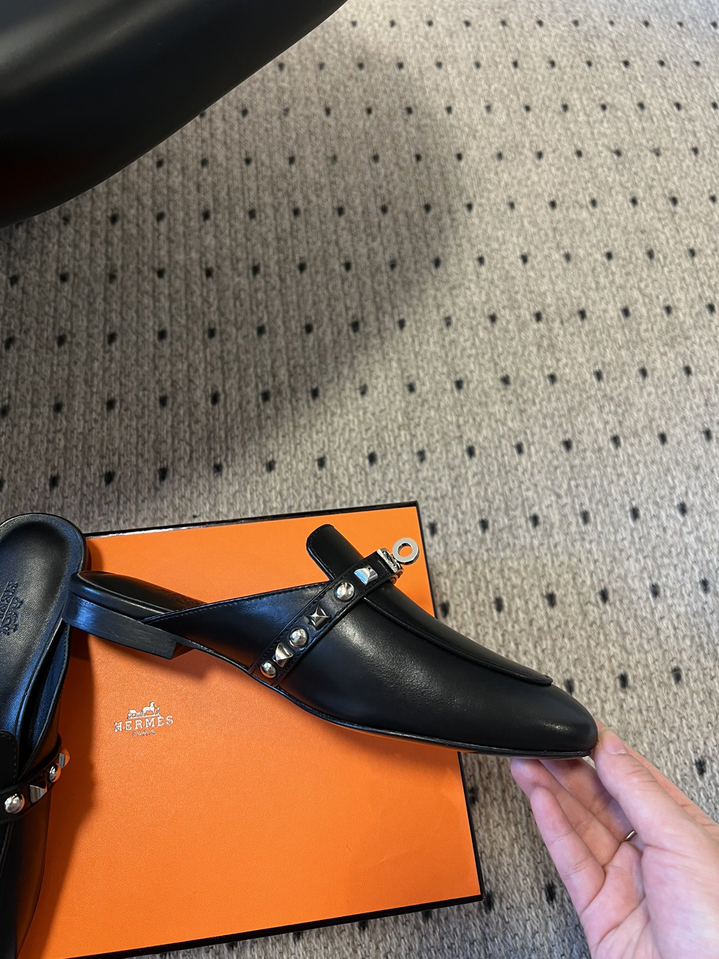 BNIB Hermes Mule Femme OZ Chevre/ Clous Noir