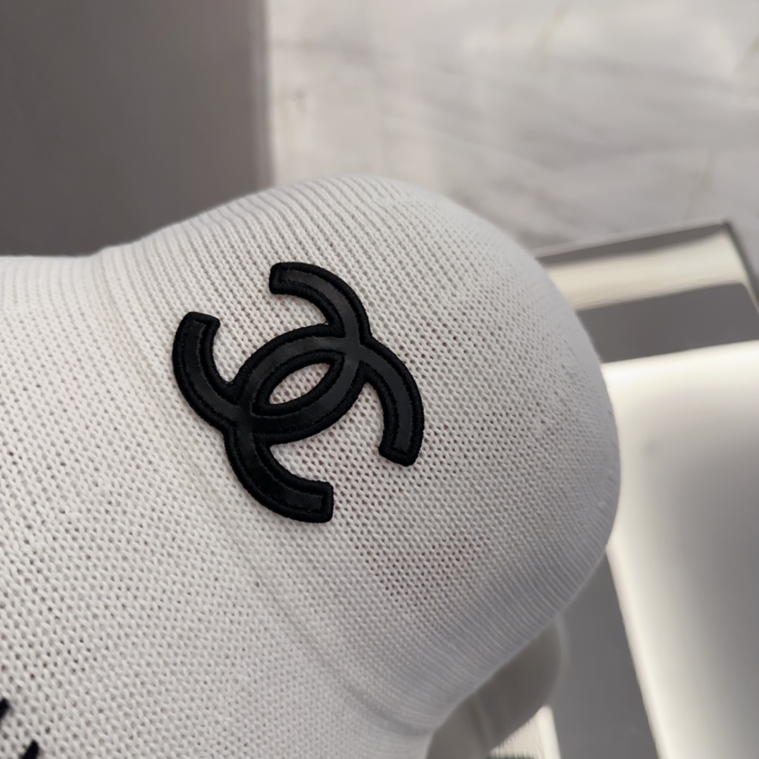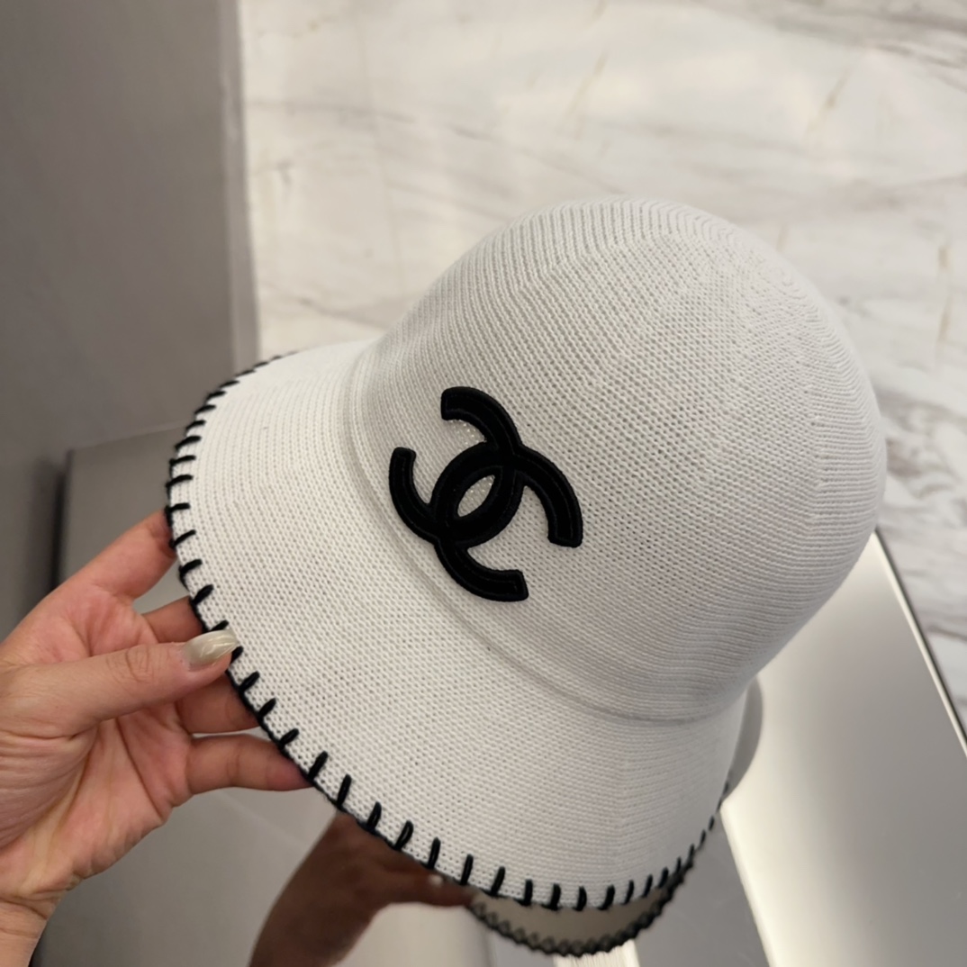 • Color: White with black Chanel double-C embroidered logo and black edging