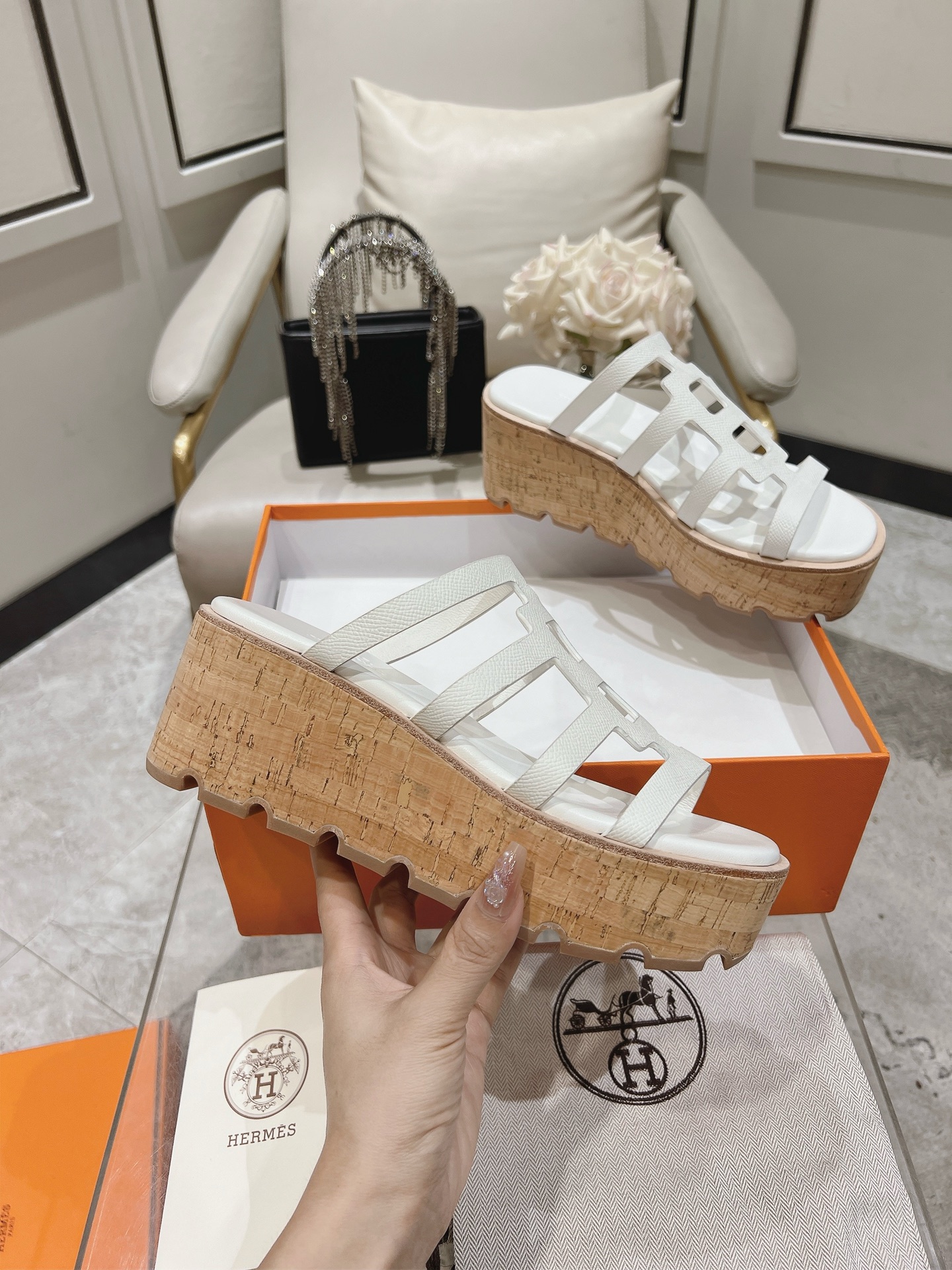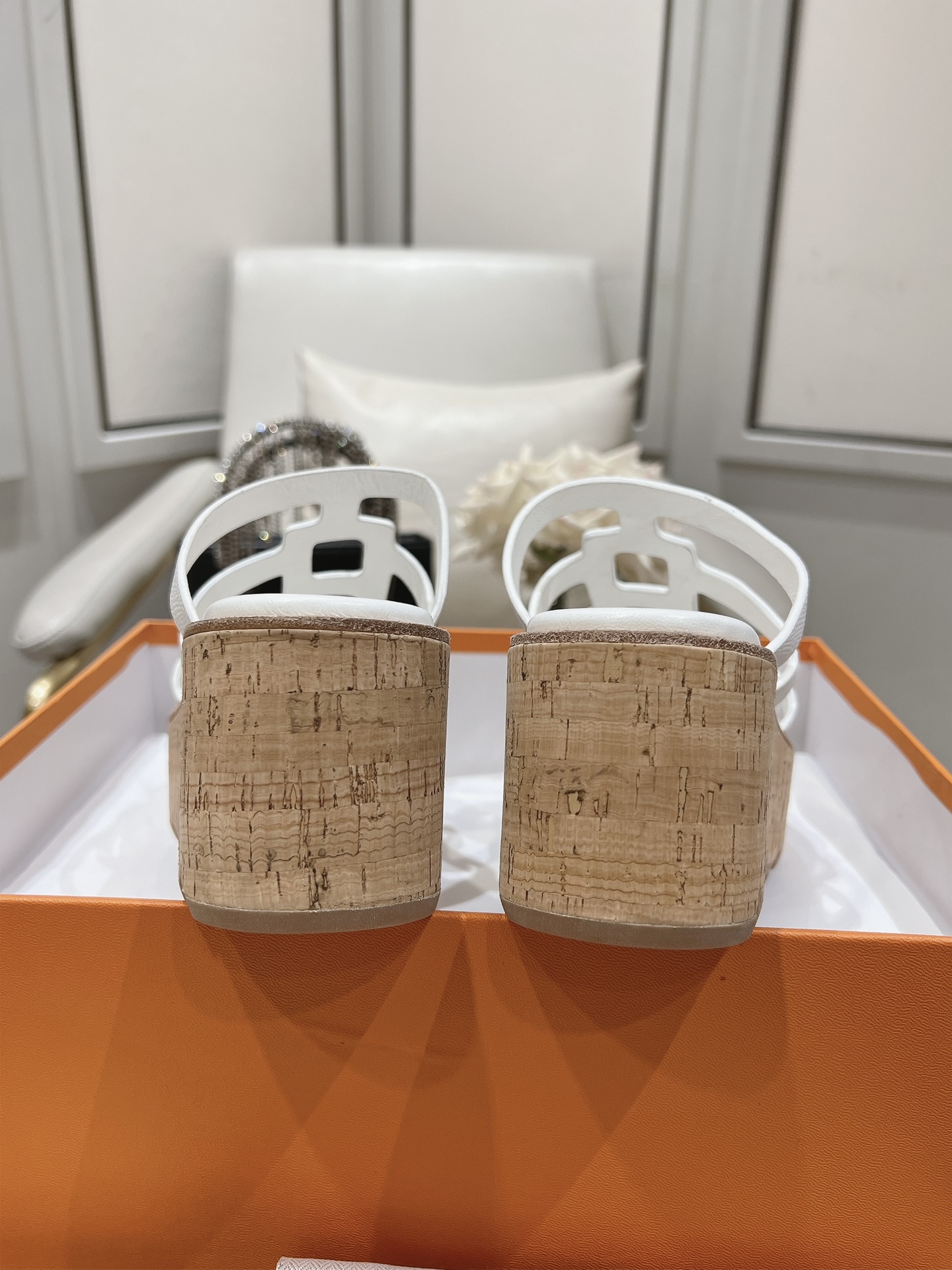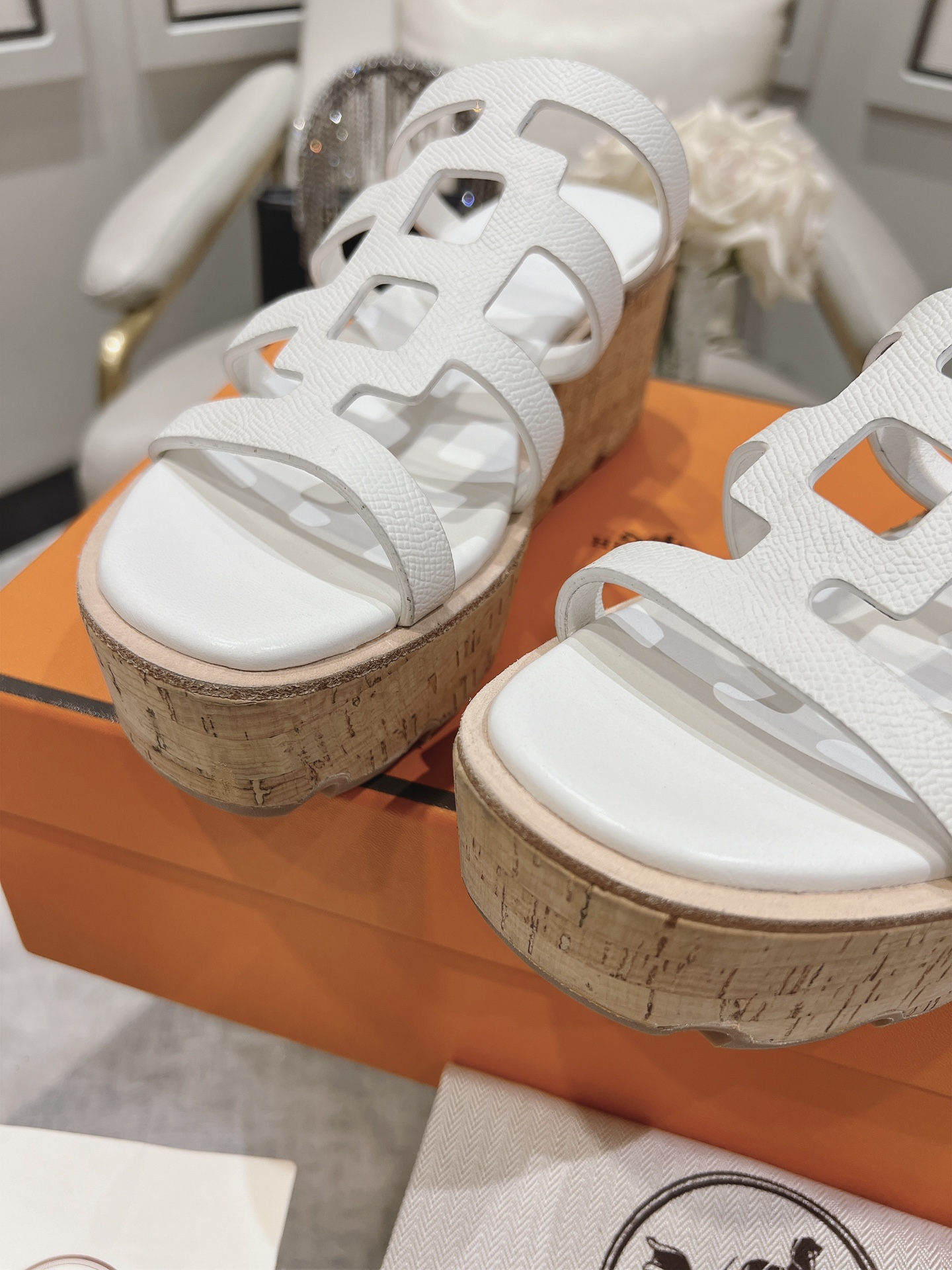Hermes Calfskin Cork Isabella 30 Sandals White
