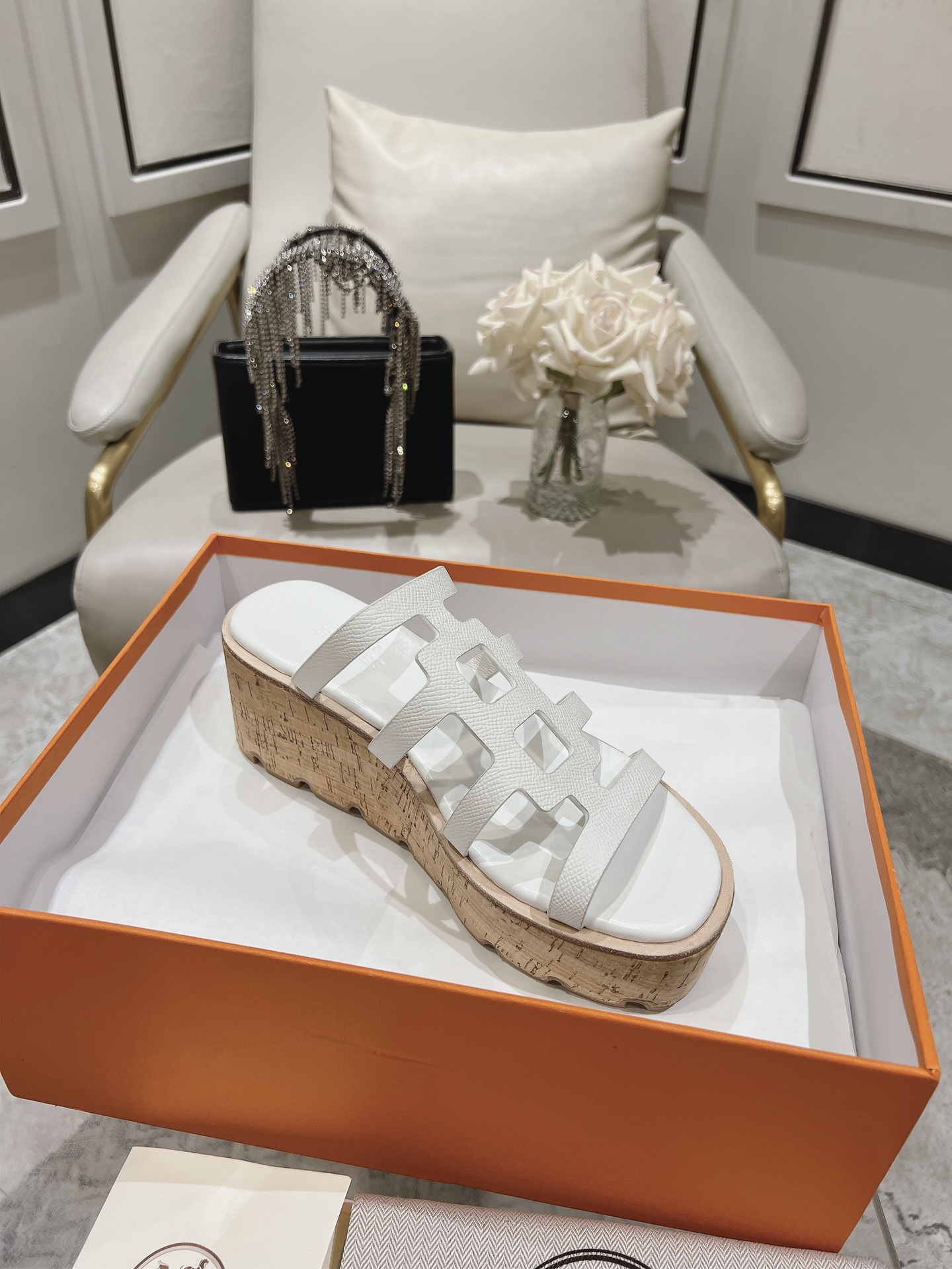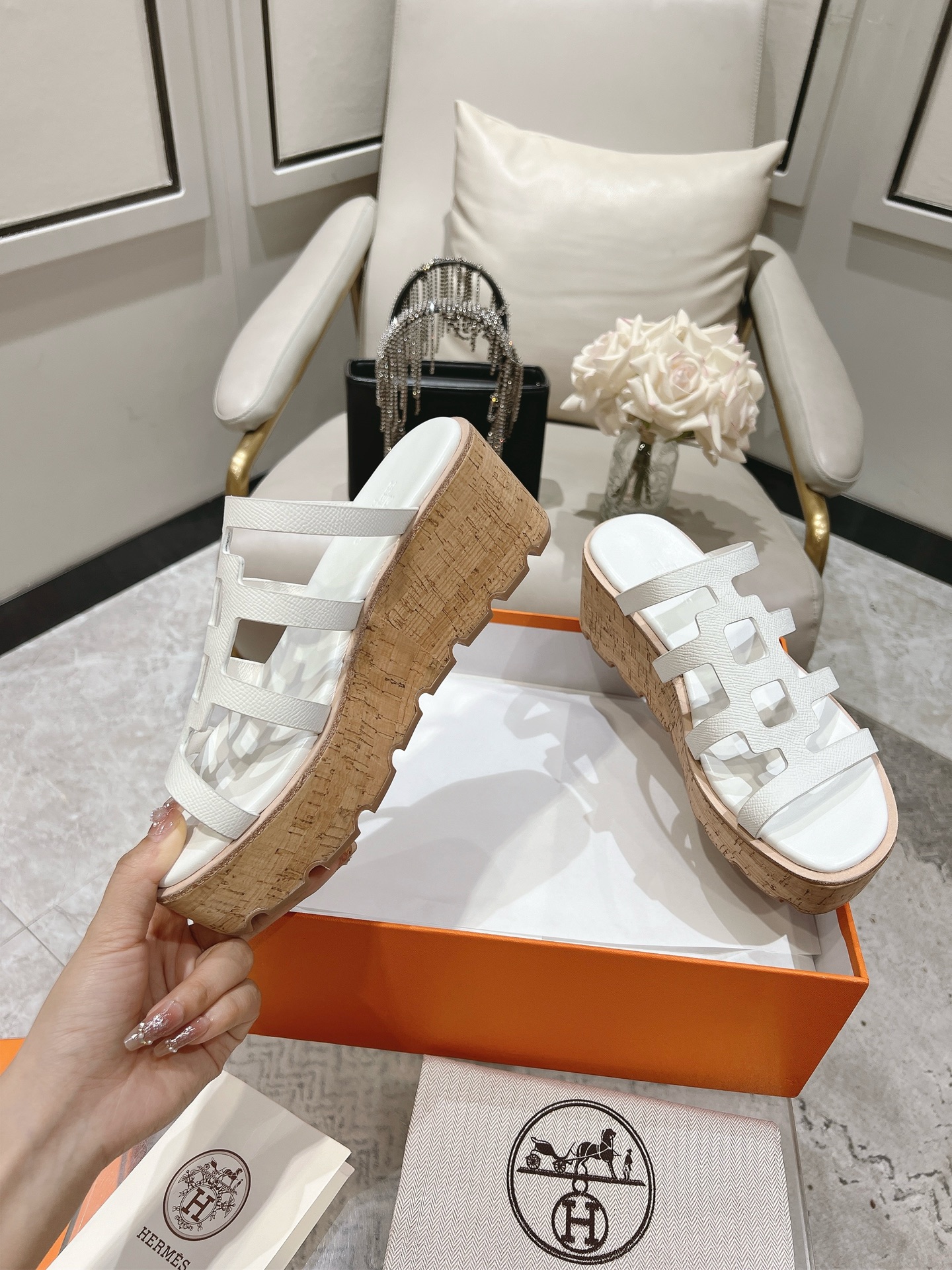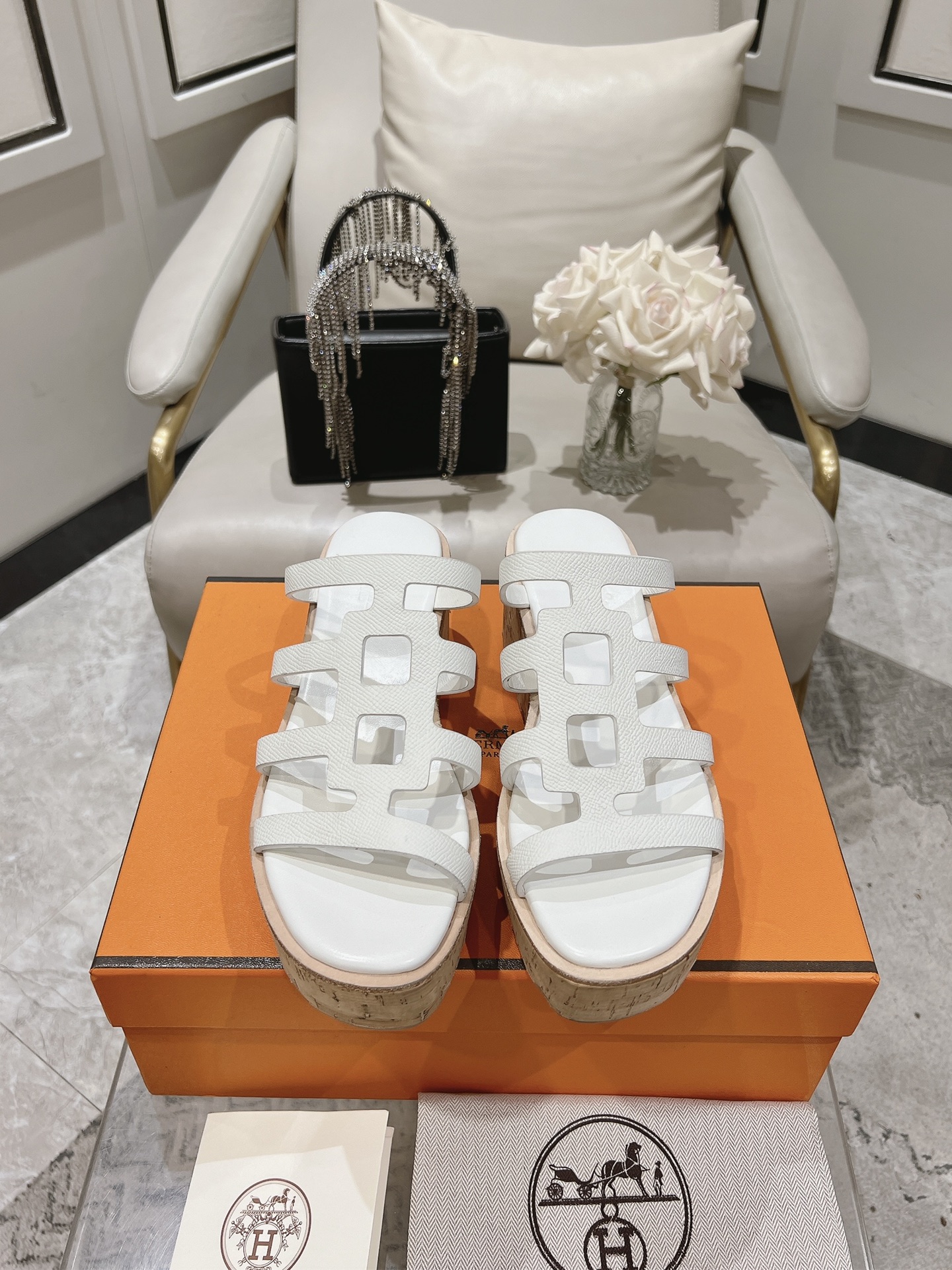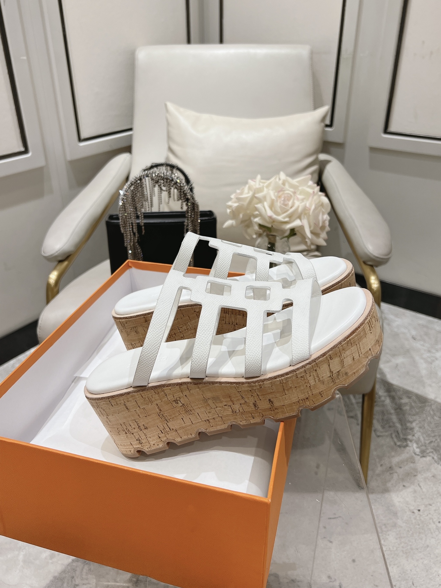 Hermes Calfskin Cork Isabella 30 Sandals White