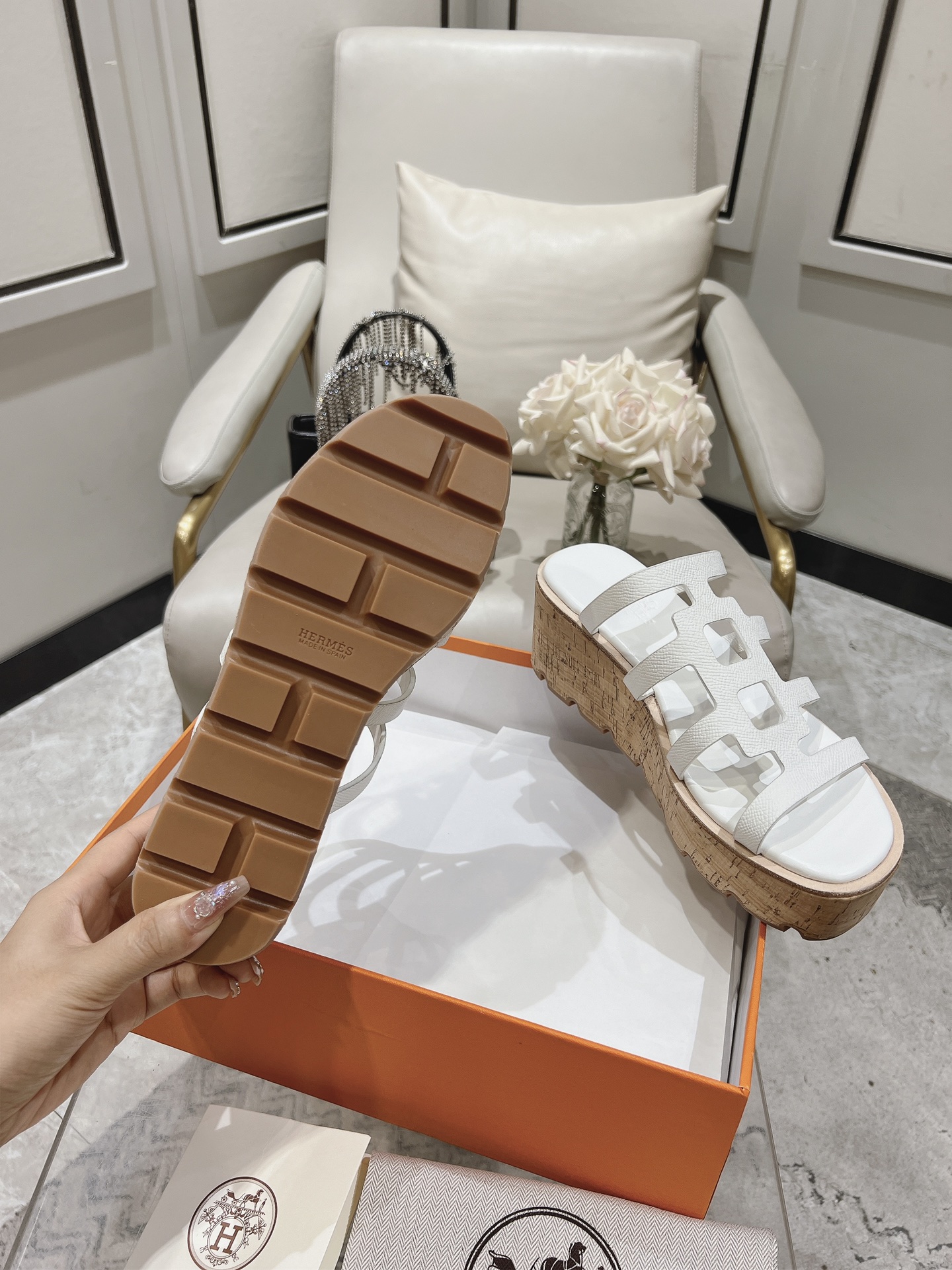 Hermès Calfskin Cork Isabella 30 Sandals – White,