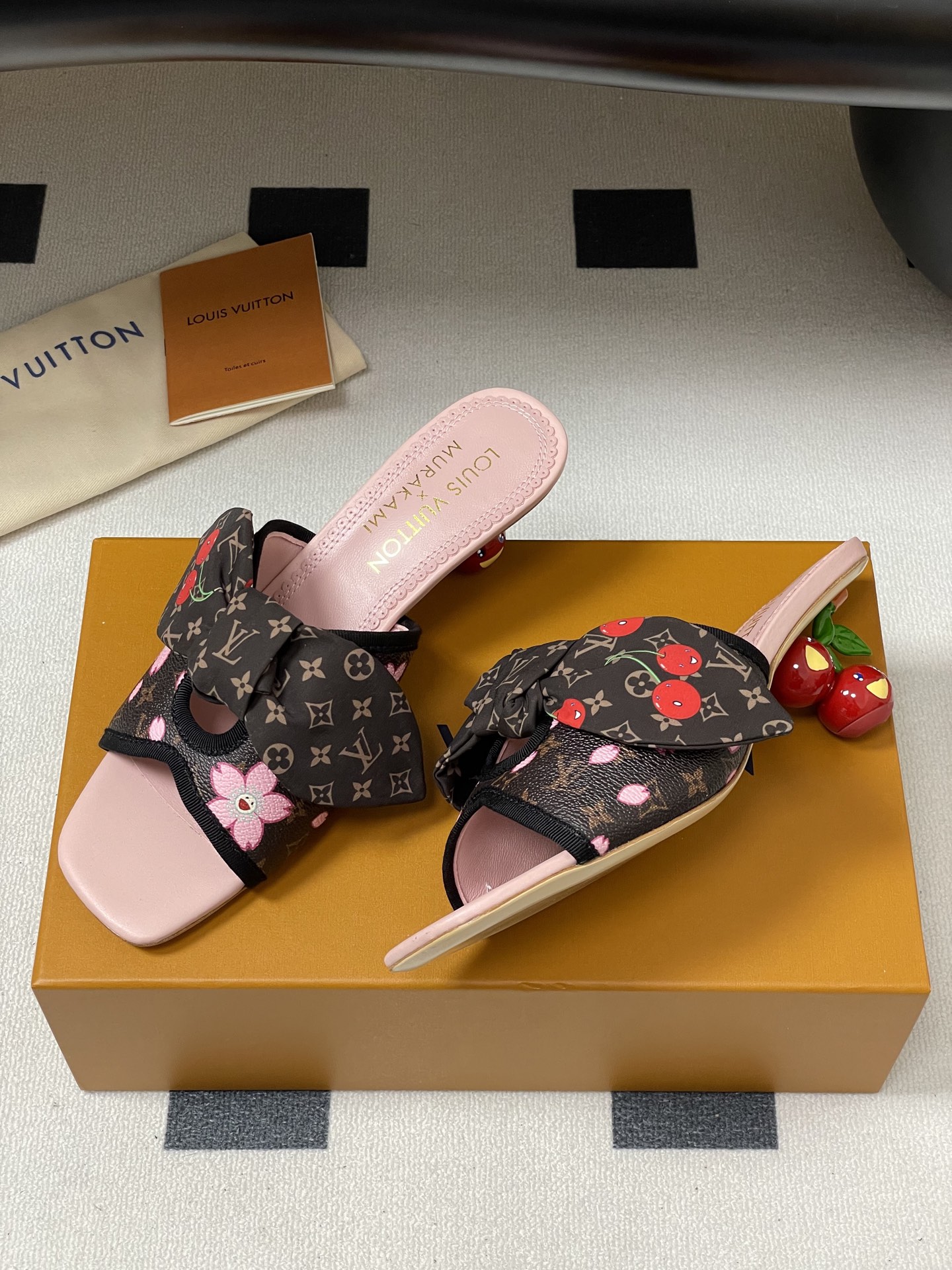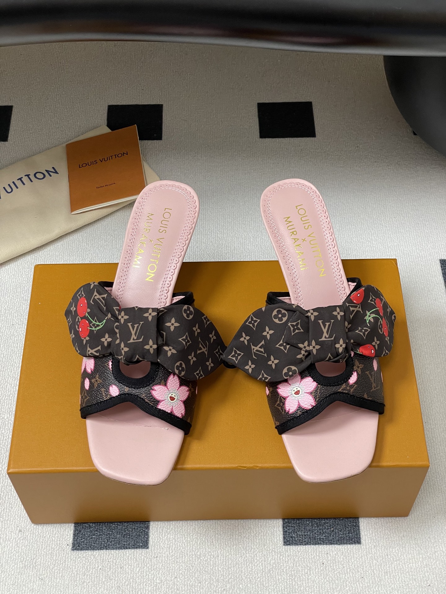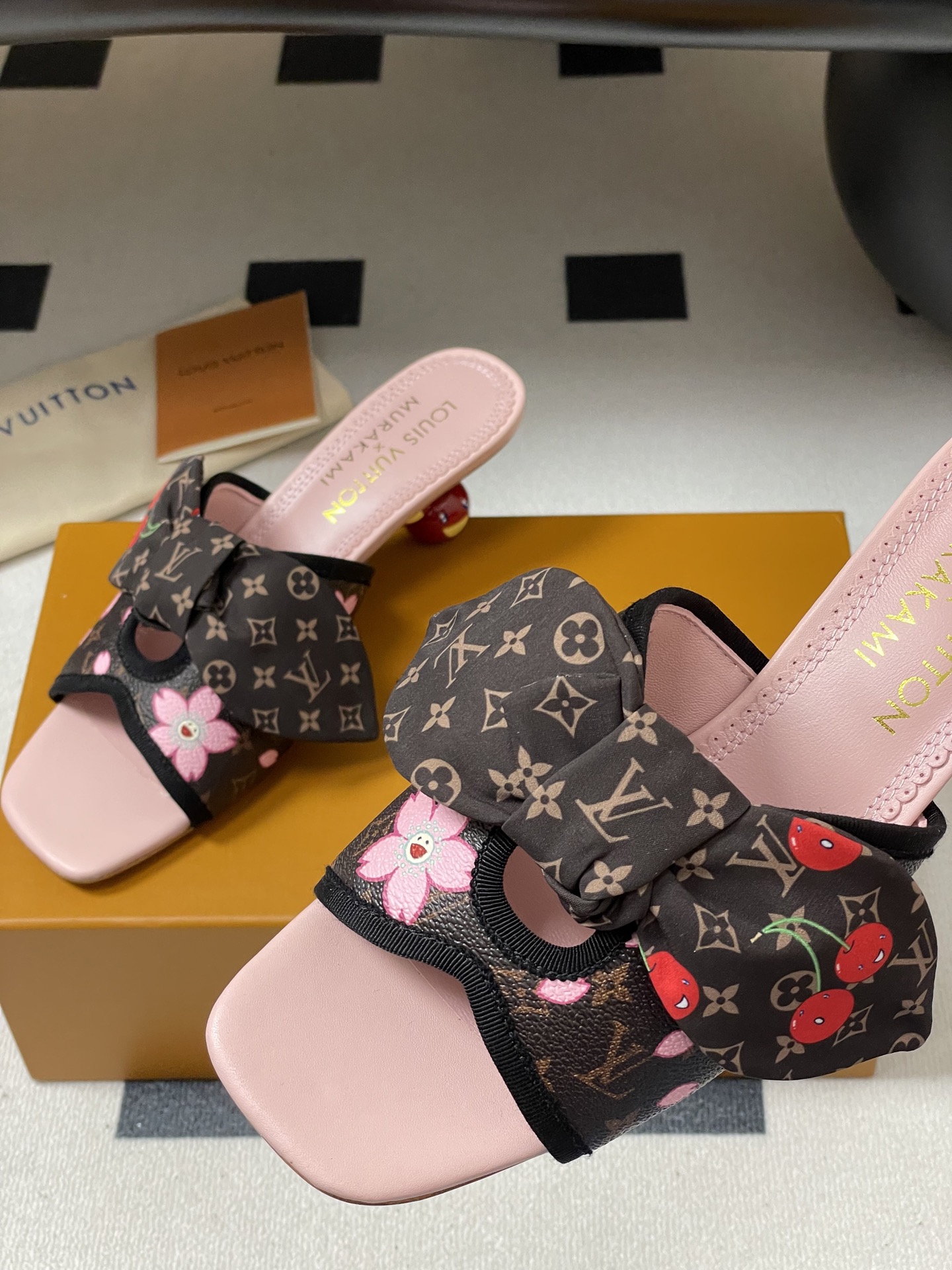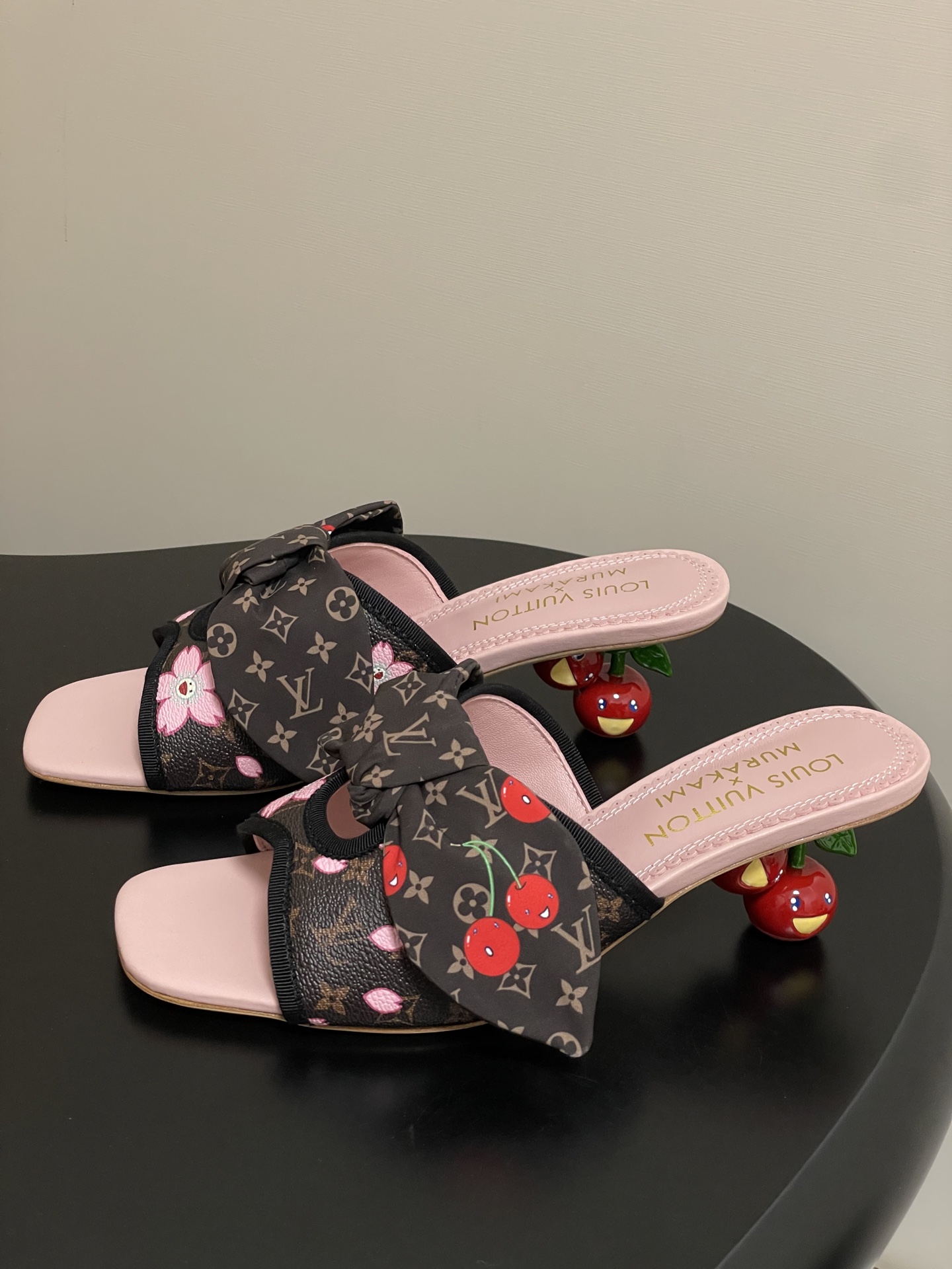 Louis Vuitton Pink Monogram Cherry Blossom Heeled Mules