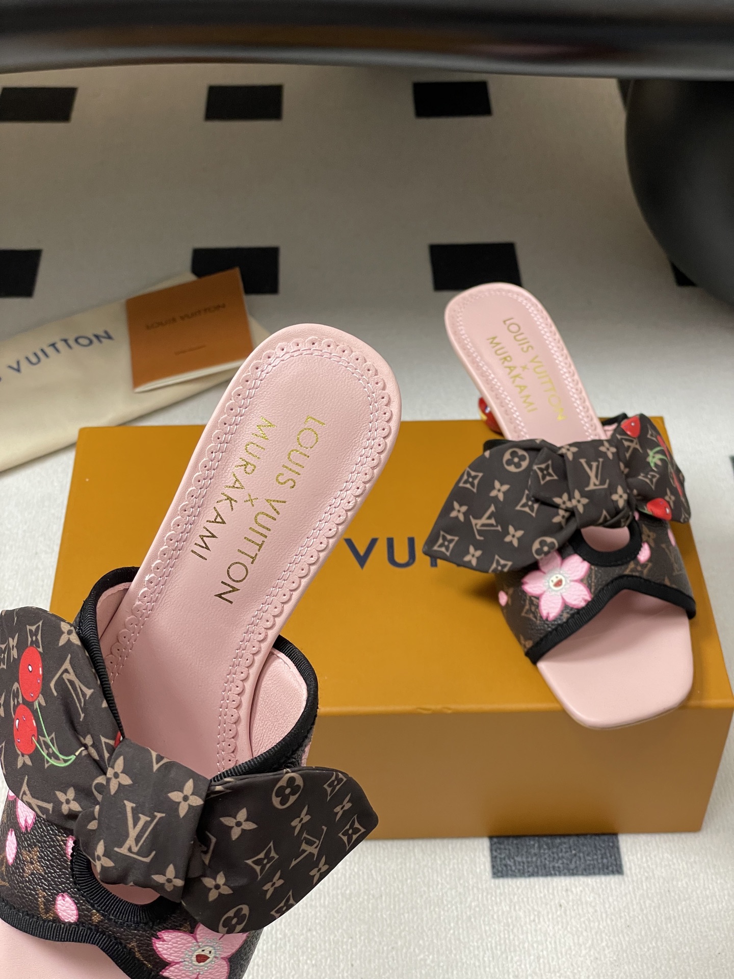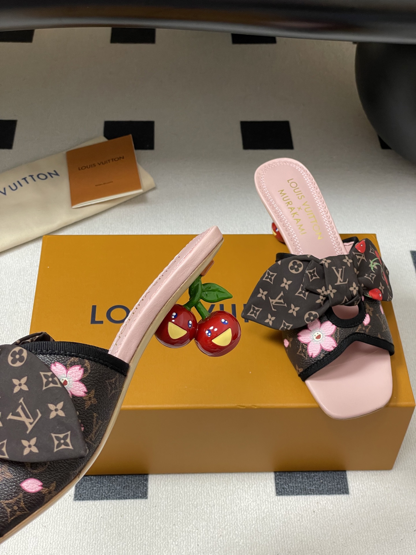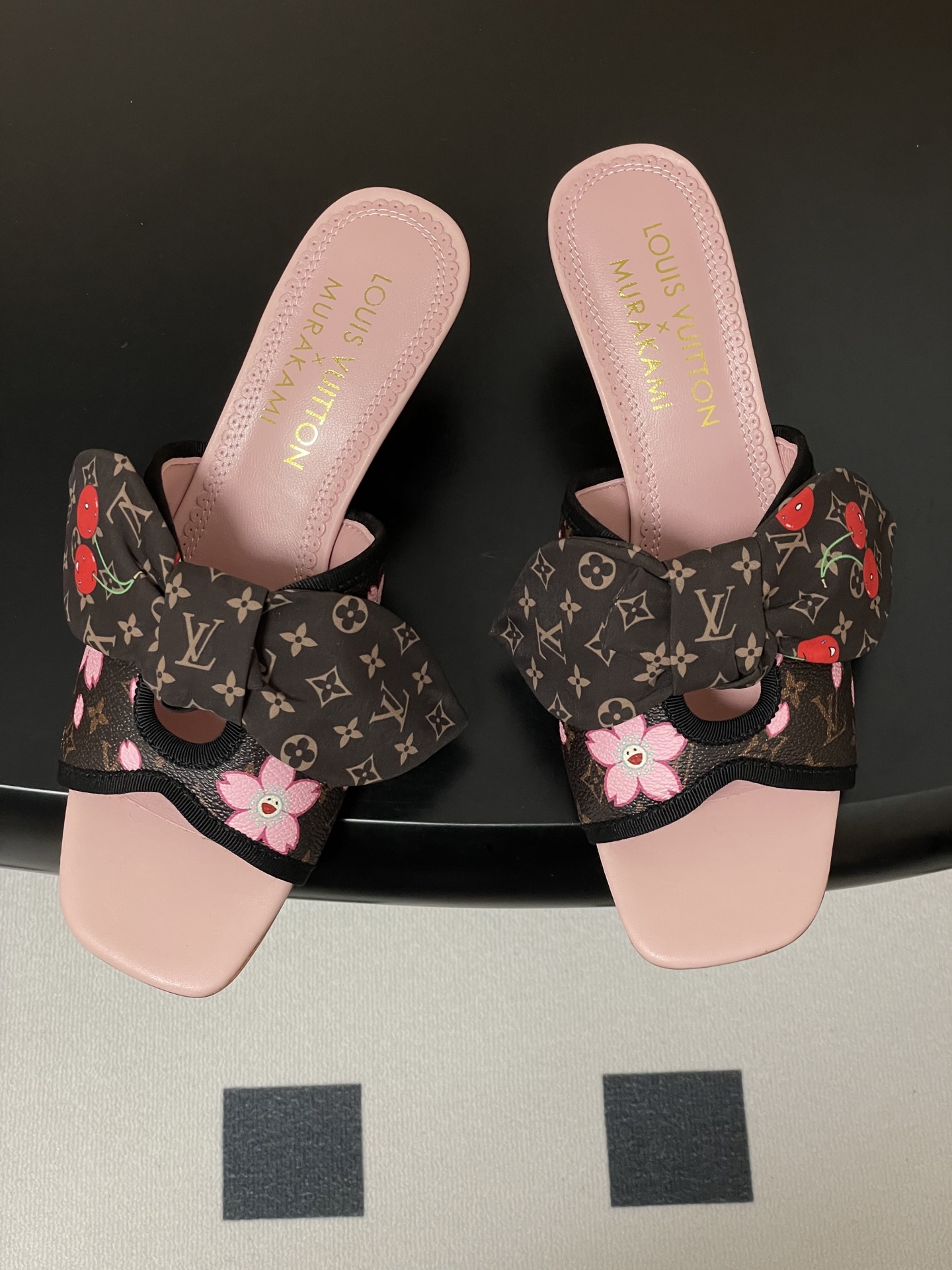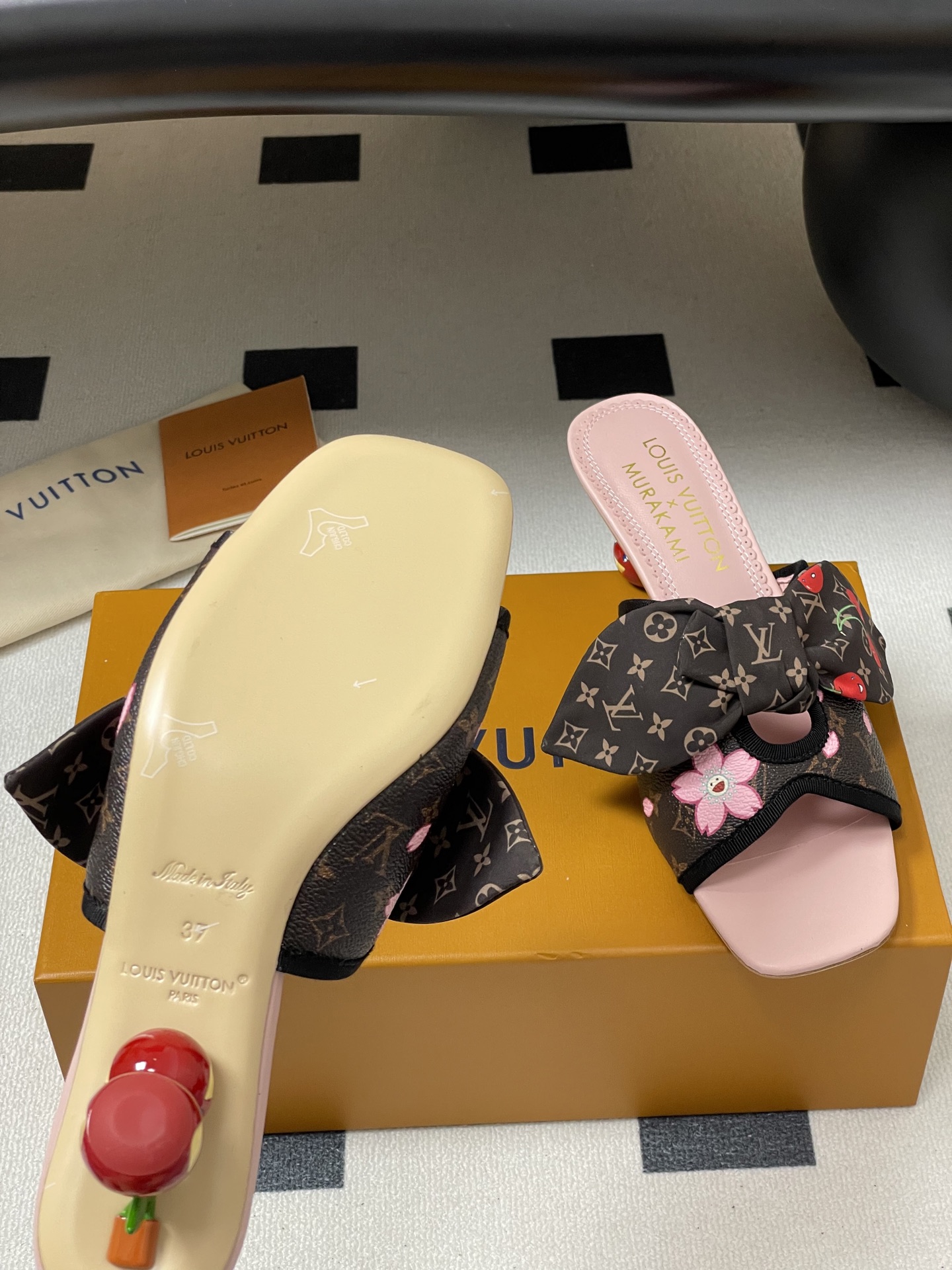 Louis Vuitton Pink Monogram Cherry Blossom Heeled Mules